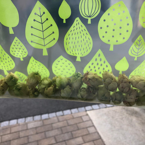 鮮度と風味を落とさないよう即日、イサナブルーイングさんへ納品させていただきました。 (すっかり収穫タイミングが遅くなってしまい、少し茶色になってしまいましたが、イサナさんからOK判定をいただき一安心)